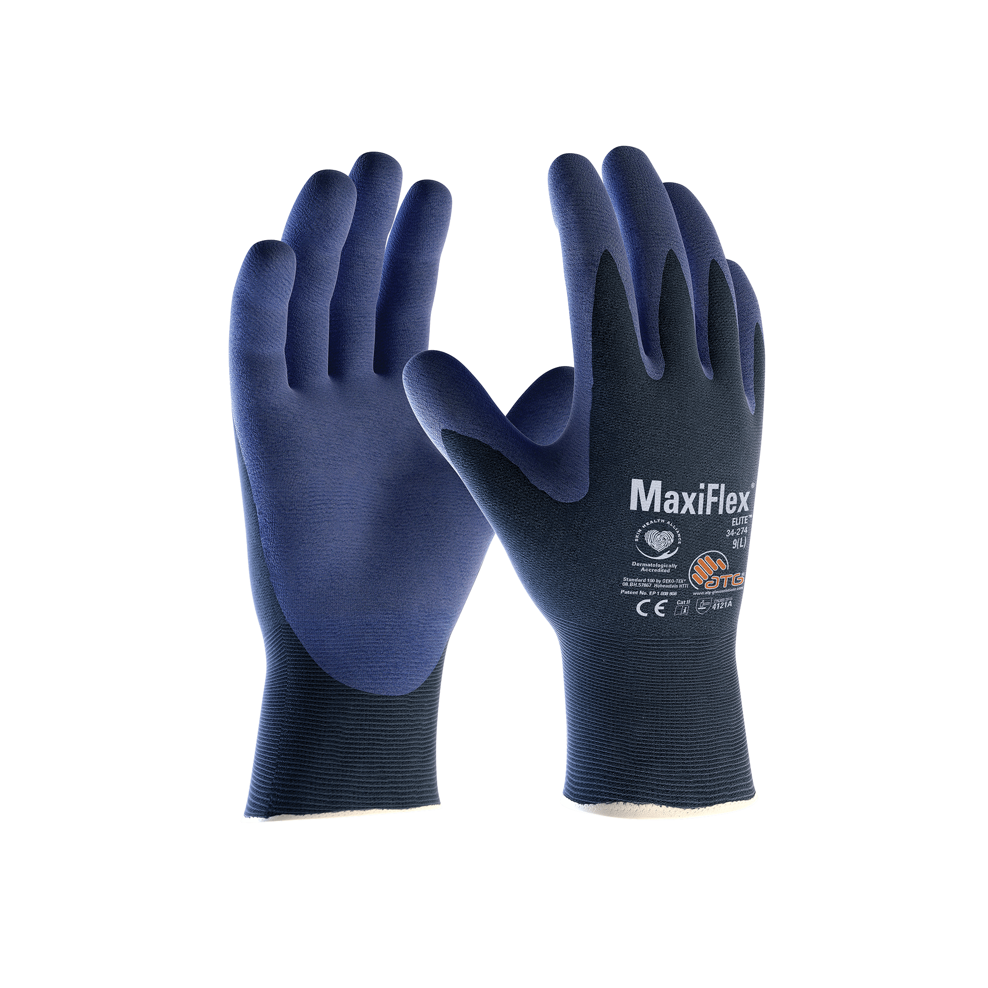 MaxiFlex® Elite™ 34-274 är tunn och slitstark hudvänlig handske med perfekt passform tillverkad i Sp andex / Nylon och doppad i Nitrilskum, för arbete i torra miljöer. Handskarna levereras med en produ ktbeskrivande hängetikett.
