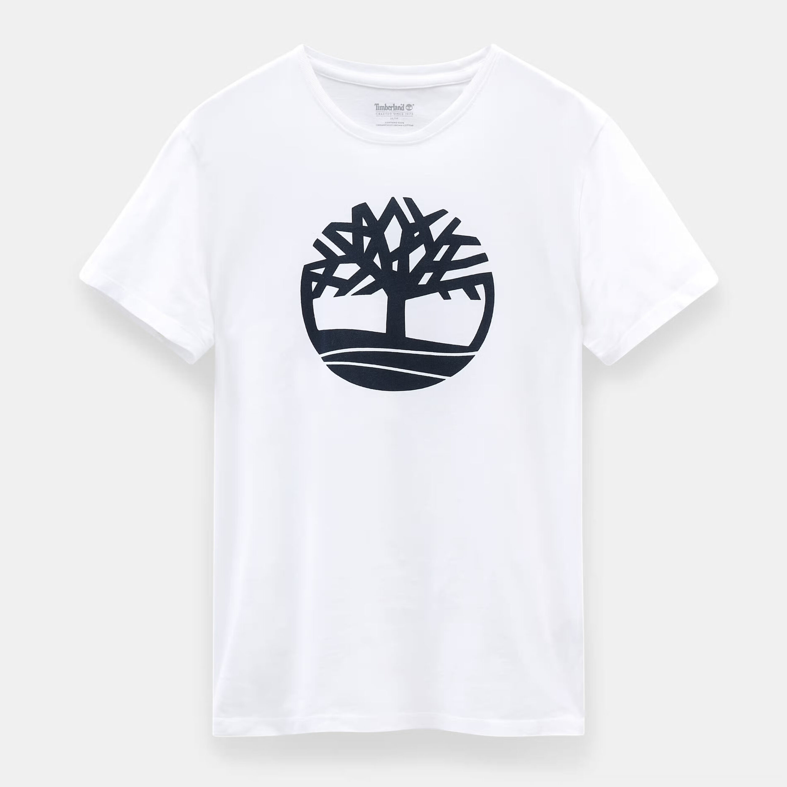 100% ekologisk bomullsjersey. Rak skärning. Timberland®-trädlogotyp tryckt på framsidan.