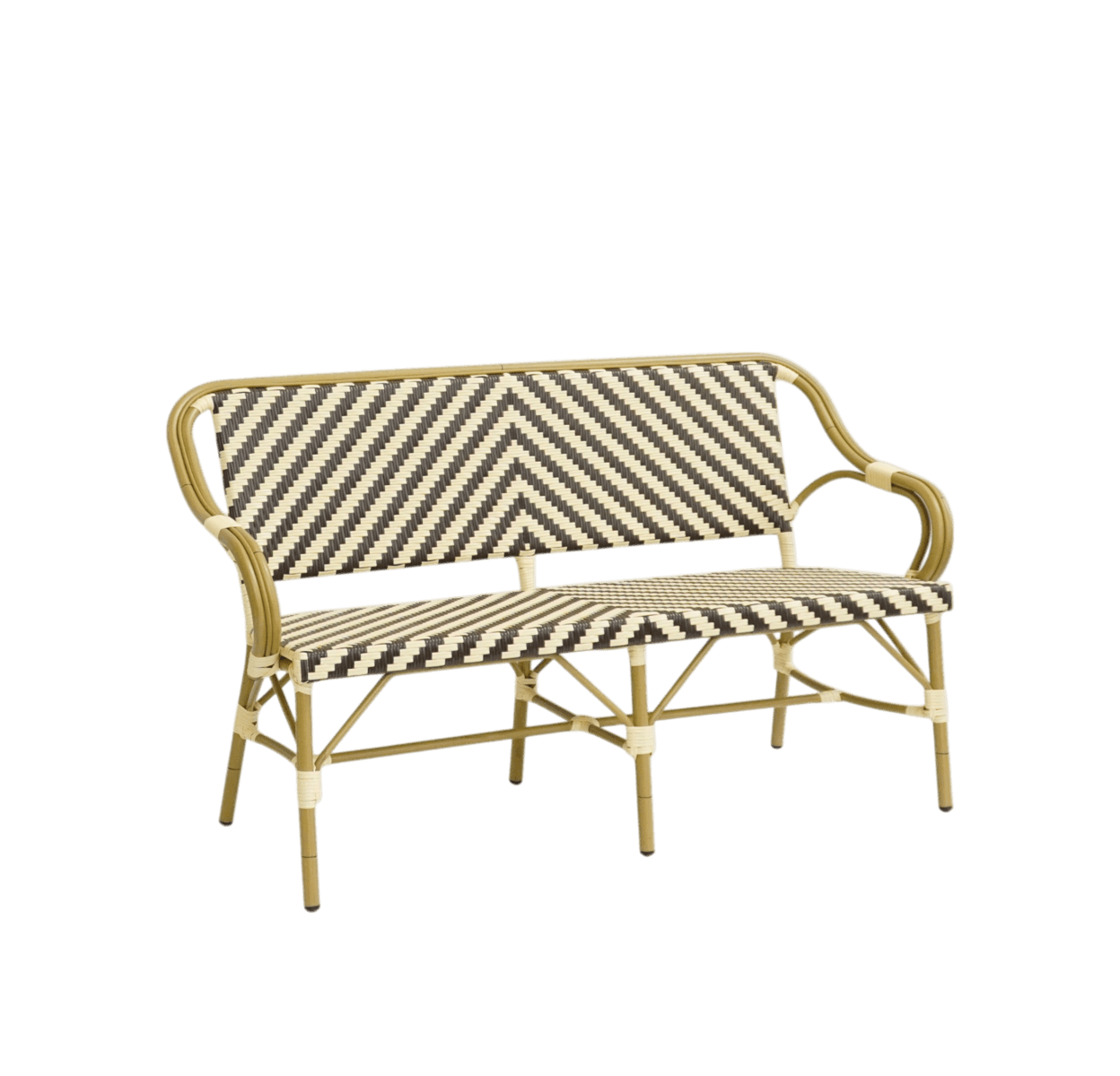 Ge ditt utomhusområde en touch av klassisk fransk elegans med vår populära Paris cafébänk med flätning. Denna bästsäljare förenar estetik och funktionalitet med sin tidlösa design och parisiska charm, vilket gör den idealisk för innergårdar, caféer, hotell och restauranger.