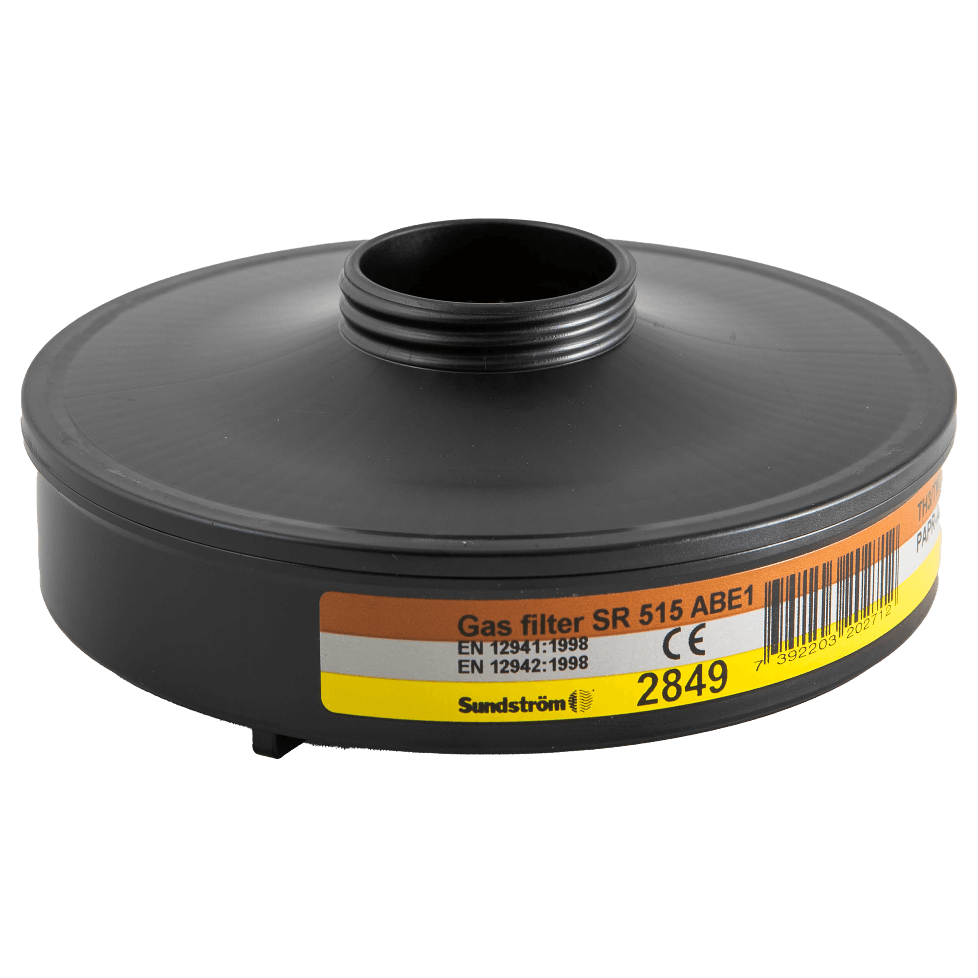 Filter för skydd mot gaser och ångor med optimerad upptagningsförmåga. Gasfilter SR 515 ABE1 är avsedda för användning i fläkt SR 500/SR 500 EX. Typ A skyddar mot organisk a gaser och ångor, t ex lösningsmedel, vars kokpunkt överstiger +65 °C. Typ B skyddar mot oorganiska gaser och ångor, t ex klor svavelväte och cyanväte. Typ E skyddar mot sura gaser och ångor, t ex sv aveldioxid och fluorväte.